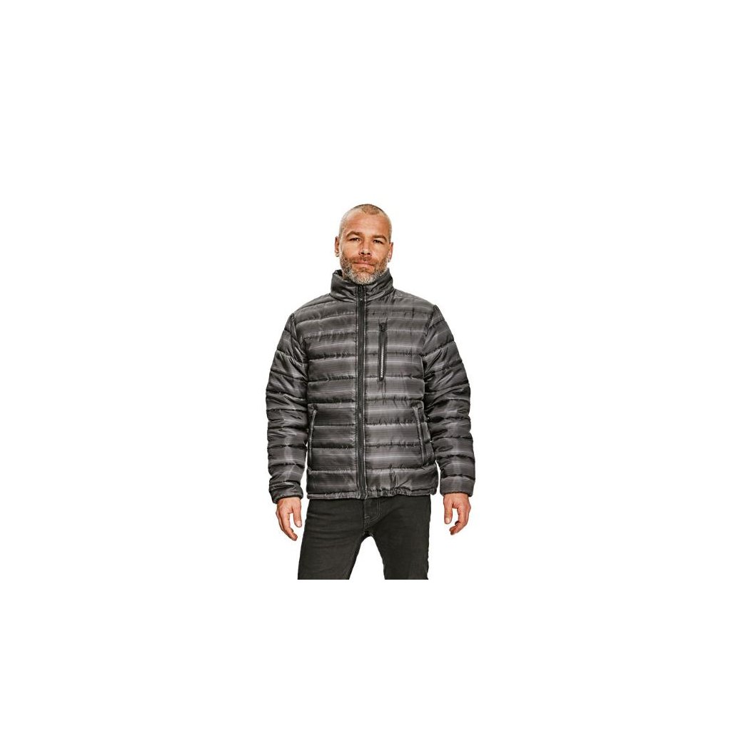 Pánská prošívaná bunda se stojáčkem. 2 lištové postranní kapsy na zip, náprsní kapsa na zip, vnitřní kapsa na mobilní telefon. Nastavitelný spodní obvod pomocí stahovací šňůrky, elastická gumička na konci rukávů.